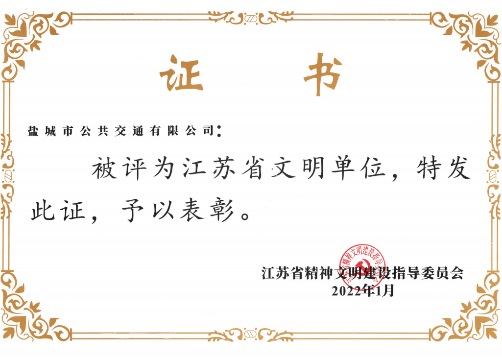 • 2022年4月公司被授予2021年度鹽城市文明創(chuàng)建工作先進(jìn)集體榮譽(yù)稱號